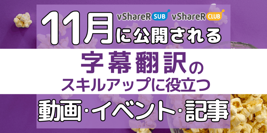 【11月】字幕翻訳のスキルアップに役立つ動画・イベント・記事(vShareR SUB & CLUB)