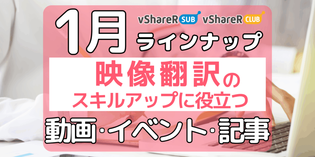 【1月ラインナップ】映像翻訳のスキルアップに役立つ動画・イベント・記事(vShareR SUB & CLUB)