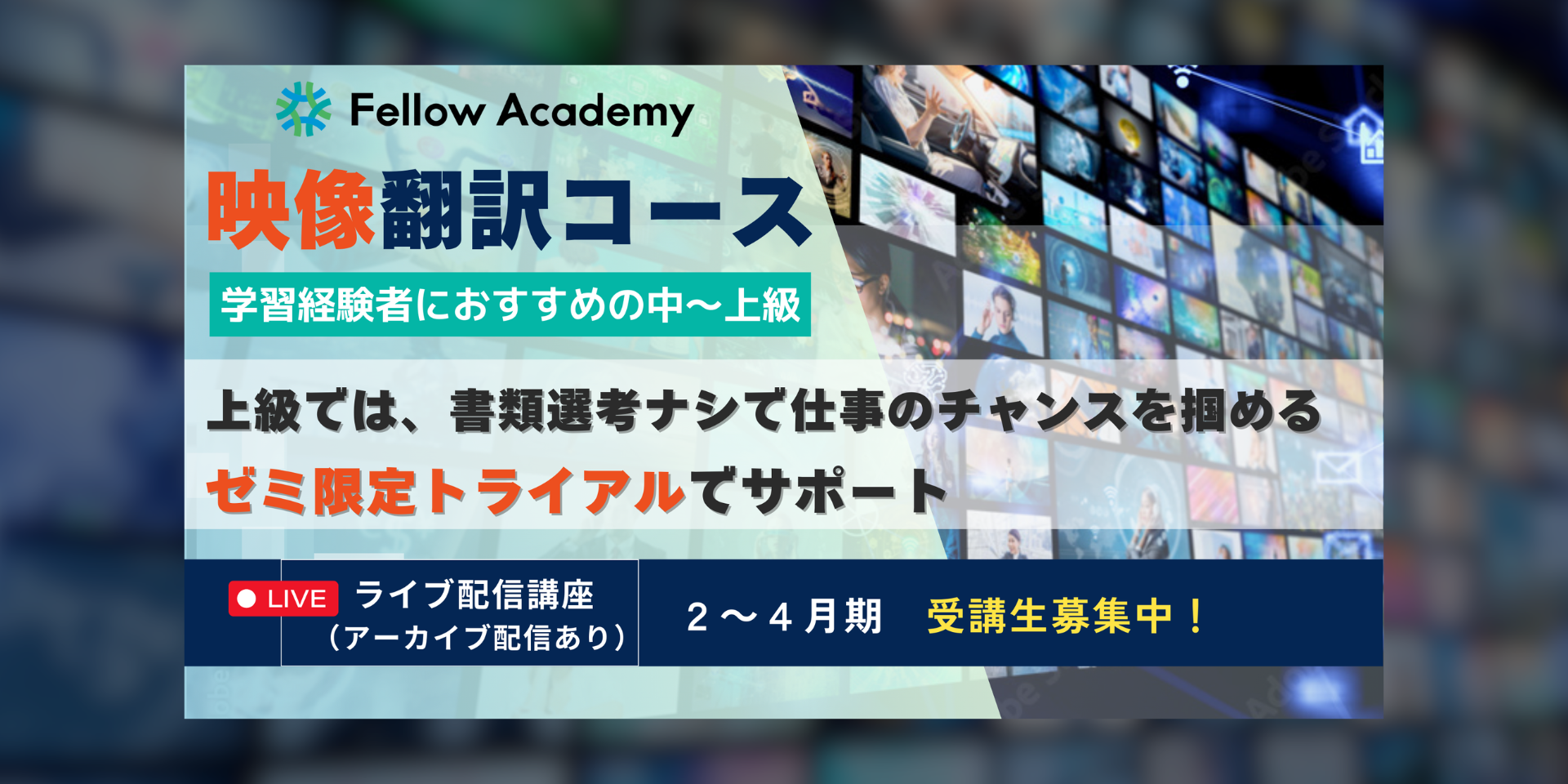 翻訳の専門校フェロー・アカデミーでは現在、映像翻訳コースの中でも、学習経験者の方に最適な中~上級講座で受講生を募集しています。