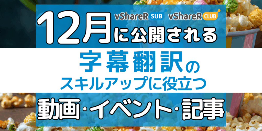 【12月】字幕翻訳のスキルアップに役立つ動画・イベント・記事(vShareR SUB & CLUB)